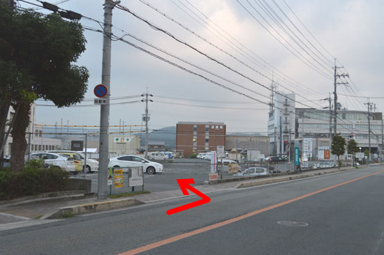 警察署看板を過ぎるとすぐ左に青空駐車場があります。