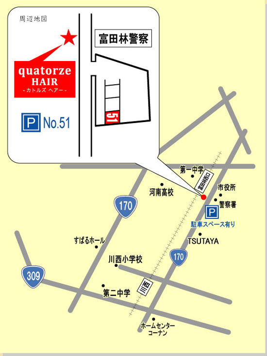 No.51がカトルズヘアーのお客様専用駐車場となっております。